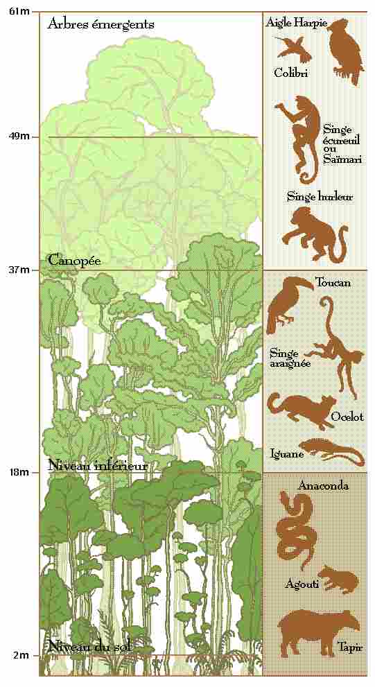 animales qui varient selon les différents niveaux : du plus