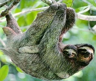 Il se nourrit de feuilles et ses préférées sont les feuilles d'un arbre appelé le Cecropia. Il reste toute ses journées dans les arbres à manger et à escalader. S'il descend sur terre, il risque fort de se faire manger. Il descendra que pour faire une petite baignade car cet animal est un excellent nageur et il peut rester sous l'eau pendant assez longtemps. Pendant la reproduction, La femelle a un petit par an. Elle le garde de 4 à 6 mois environ avant la naissance. Pendant cinq semaines, le petit restera agrippé à la fourrure de sa mère avant de la quitter. Tapir