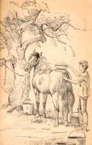 Ginny is washing Mokey to go for a ride with her new friend Pam.